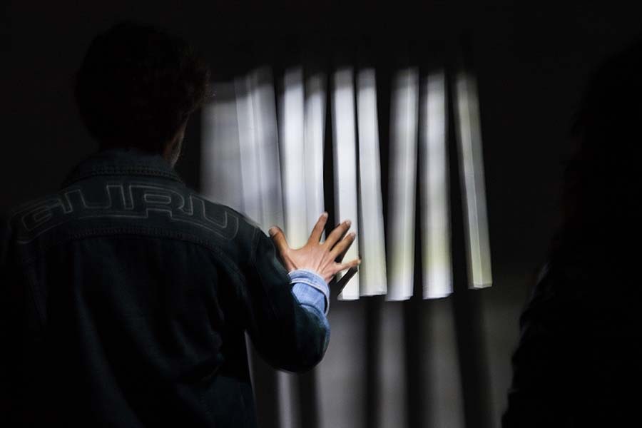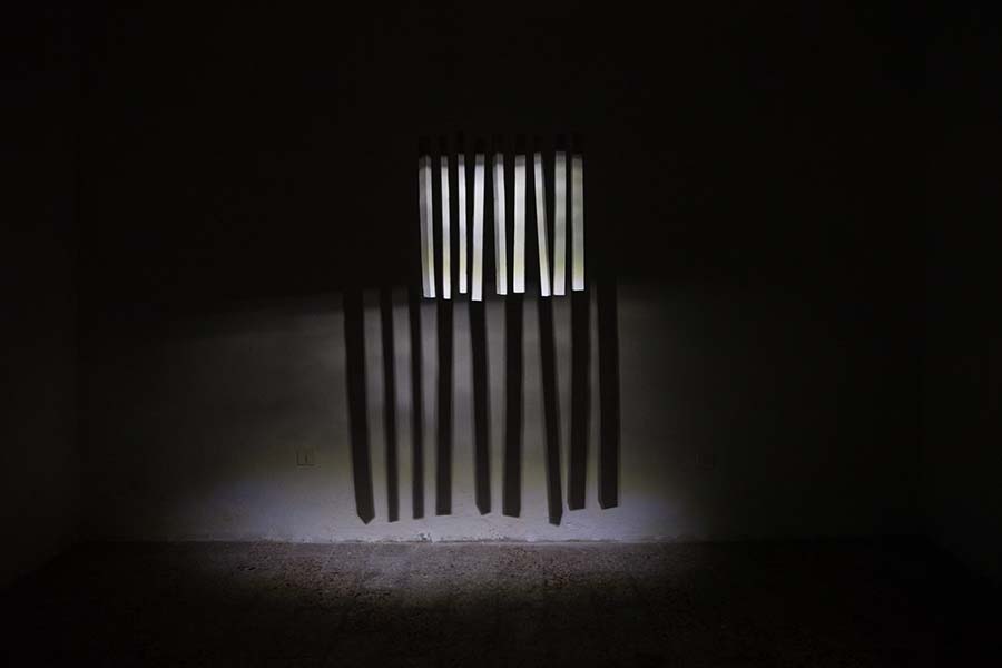 Che suono potrebbe avere il limite? Che forma potrebbe avere il labile rapporto d’incontro-scontro tra due entità? Partendo da questi quesiti la ricerca di Arianna De Nicola si propone di indagare le relazioni tra individui, affrontando il tema del limite sia come soglia di creazione sia come principio drammatico originario di una possibile rottura. L’interesse nei confronti delle variabili e verso la coesistenza della creazione e della distruzione danno origine ad un’indagine metaforica rispetto all’agire e alle relazioni umane, al comportamento, alle conseguenze. Eliminando tutto ciò che è superfluo, l’artista si concentra sulla poetica dell’incontro e dello scontro, senza nessuna prova, né finale prestabilito. Una riflessione sulla trasformazione di tutte le cose, che si traduce in un agire senza ripetizioni che lascia al caso le alterazioni dei corpi in un sistema in stato di equilibrio instabile. Arianna ha immaginato di creare uno spazio evocativo, denso di strutture sonore e immagini che richiamano il cambio sviluppando lavori installativi scultorei e performativi che invitano il pubblico alla riflessione sull’incontro e sullo scontro, dove lo spiazzamento è affrontato in forma leggera. Attraverso la ceramica, materia solida e labile allo stesso tempo, De Nicola esprime in senso plastico la fragilità dell’armonia, riflettendo sulla pratica della scultura come esperienza umana. Se nella prima installazione sensoriale l’oscillazione casuale delle sue parti nel vuoto dello spazio produce la nascita del suono e, al contempo, la possibilità di una destabilizzante rottura come conseguenza allo scontro; la seconda, in parte caratterizzata da un’azione performativa dell’artista realizzata al momento dell’installazione dell’opera, si propone di sviluppare, attraverso il gesto d’inchiodare delle ceramiche alla parete, la tematica della moltitudine e dell’insieme come metafora del coraggio dell’unione con possibili conseguenze. Non casuale la decisione di sviluppare le opere in uno spazio domestico, un luogo con un vissuto interpersonale che evoca l’inizio e la fine di un rapporto.